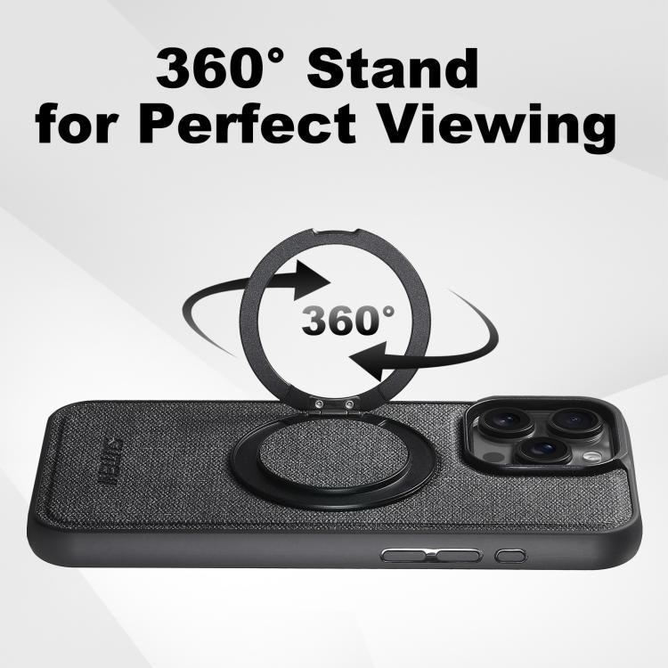 For iPhone 13 Pro Max Suteni G3 360 Rotation Holder MagSafe Denim Leather Back Phone Case(Black)