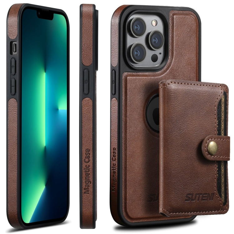 For iPhone 13 Pro Max Suteni M1 Oil Wax MagSafe Detachable Horizontal Card Bag Phone Case(Brown)