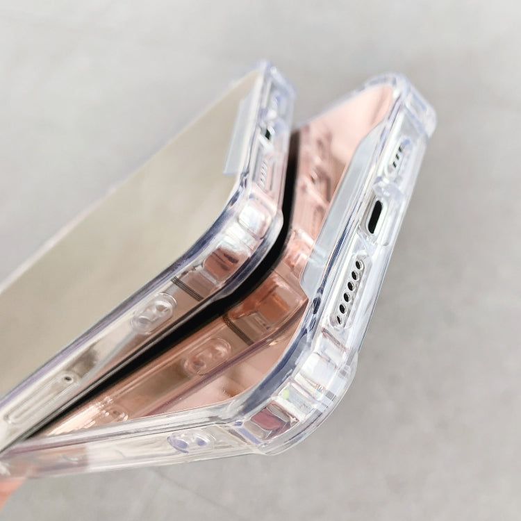 For iPhone 13 Pro Max TPU + Acrylic Four Drop Luxury Plating Mirror Phone Case Cover (Rose Gold)