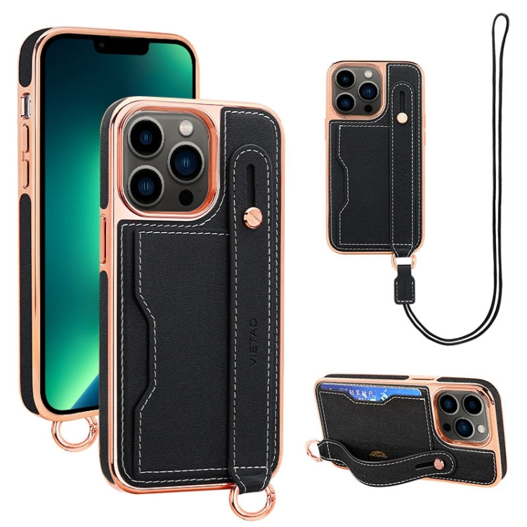 For iPhone 13 Pro Max VIETAO Card Slot Wristband Phone Case with Lanyard(Black)