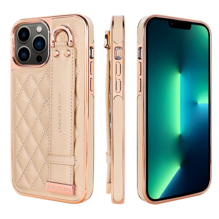 For iPhone 13 Pro Max VIETAO Rhombic Texture Wristband PU Phone Case(Pink)