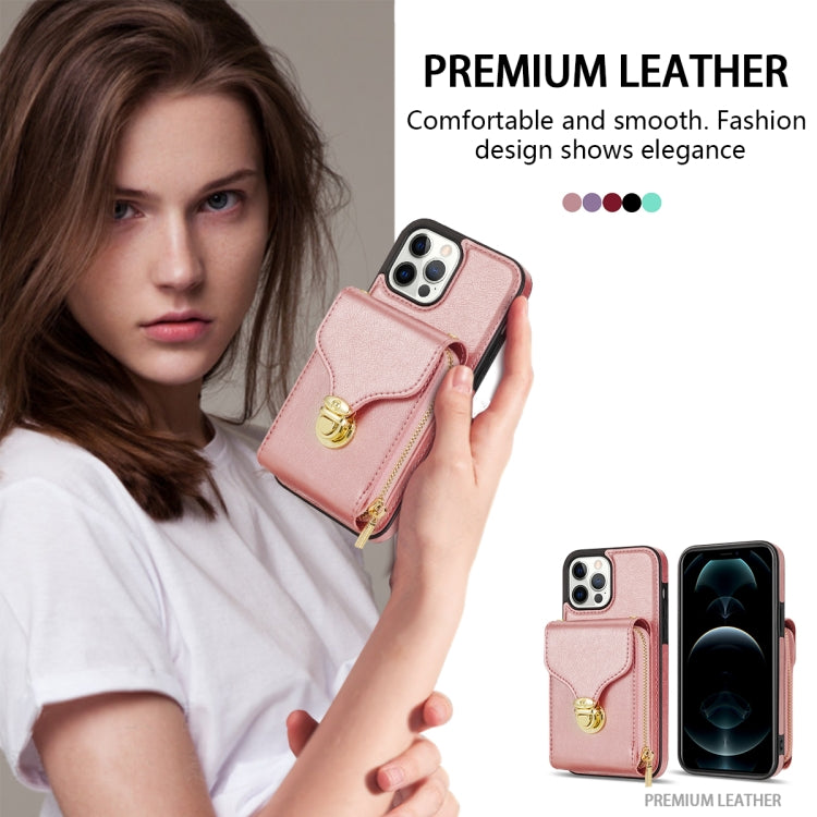 For iPhone 13 Pro Max Zipper Hardware Card Wallet Phone Case(Rose Gold)