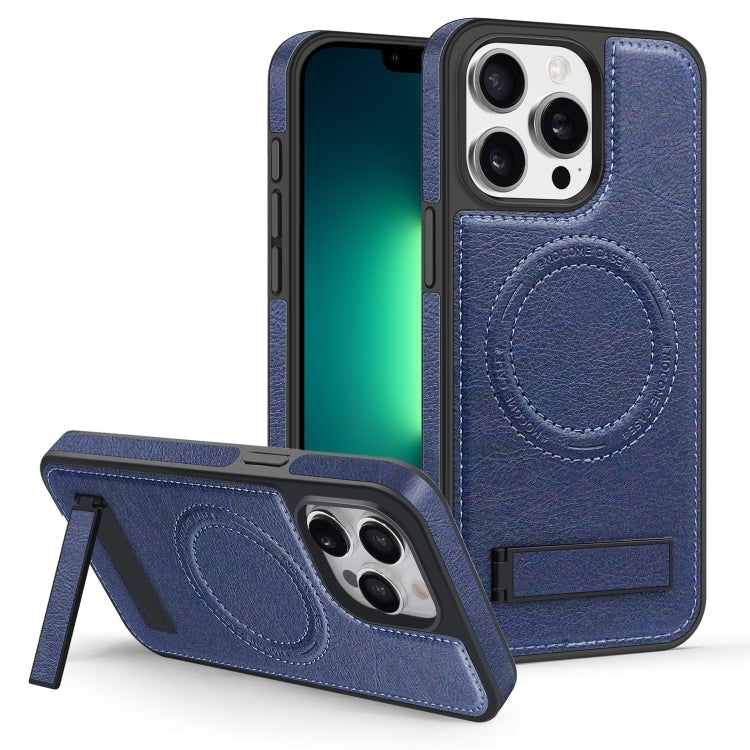 For iPhone 13 Pro Multi-function Holder MagSafe PU Phone Case(Blue)