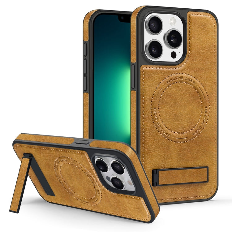 For iPhone 13 Pro Multi-function Holder MagSafe PU Phone Case(Brown)