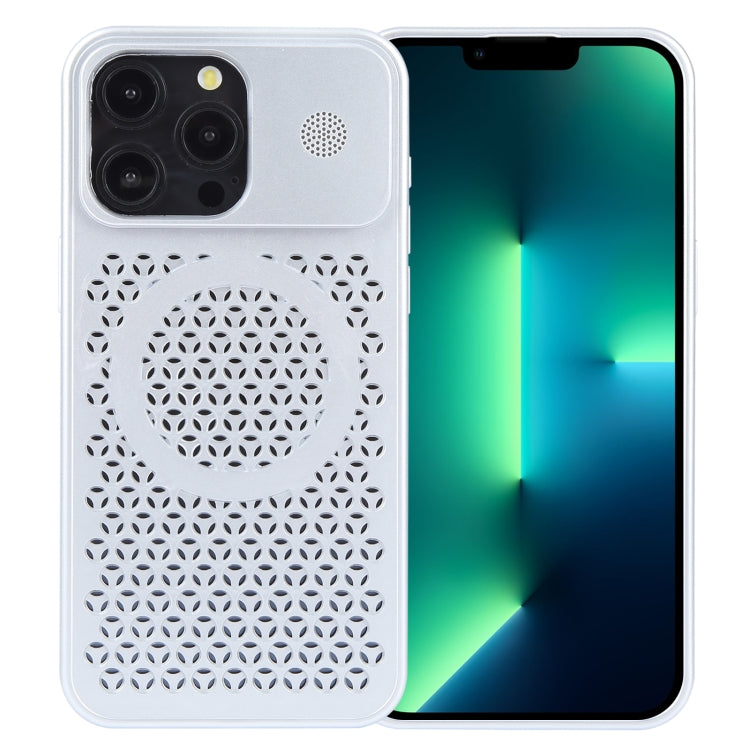 For iPhone 13 Pro Pure Color Honeycomb Aromatherapy MagSafe Phone Case(Silver)