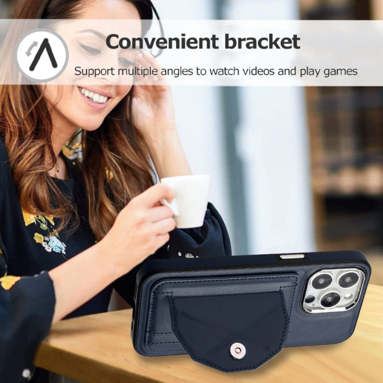 For iPhone 13 Pro Shockproof Leather Phone Case with Card Holder(Blue)