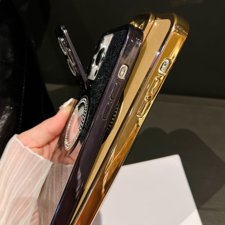 For iPhone 13 Pro Starry Glitter MagSafe Lens Holder Phone Case(Silver)