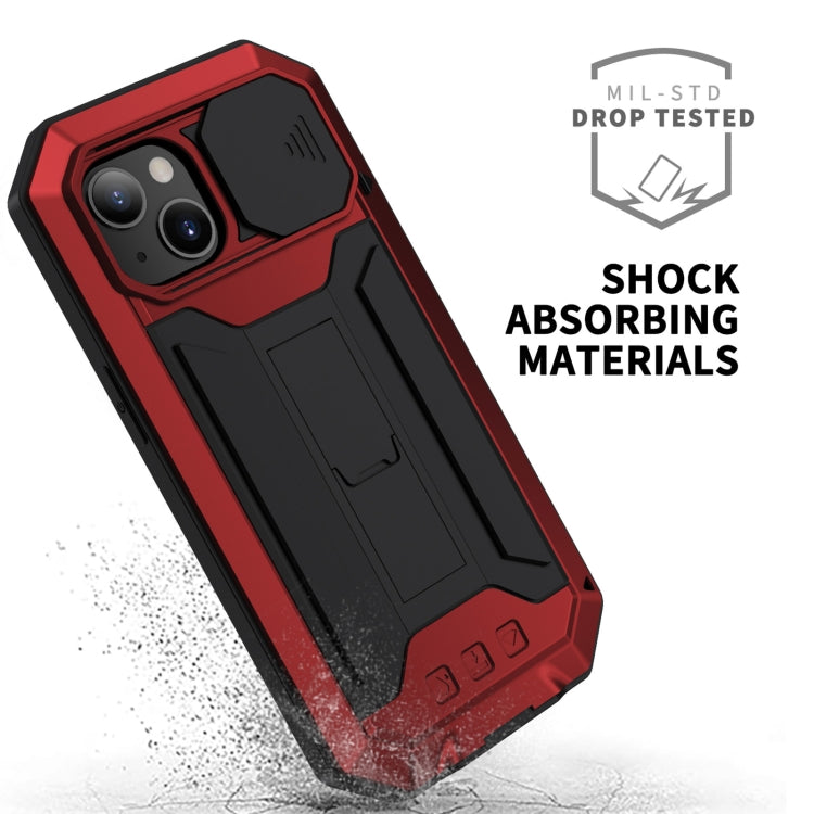 For iPhone 13 R-JUST Sliding Camera Shockproof Life Waterproof Dust-proof Metal + Silicone Protective Case with Holder(Red)