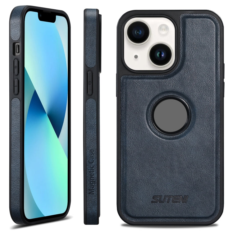 For iPhone 13 Suteni G1 Magsafe Leather Back Phone Case(Blue)