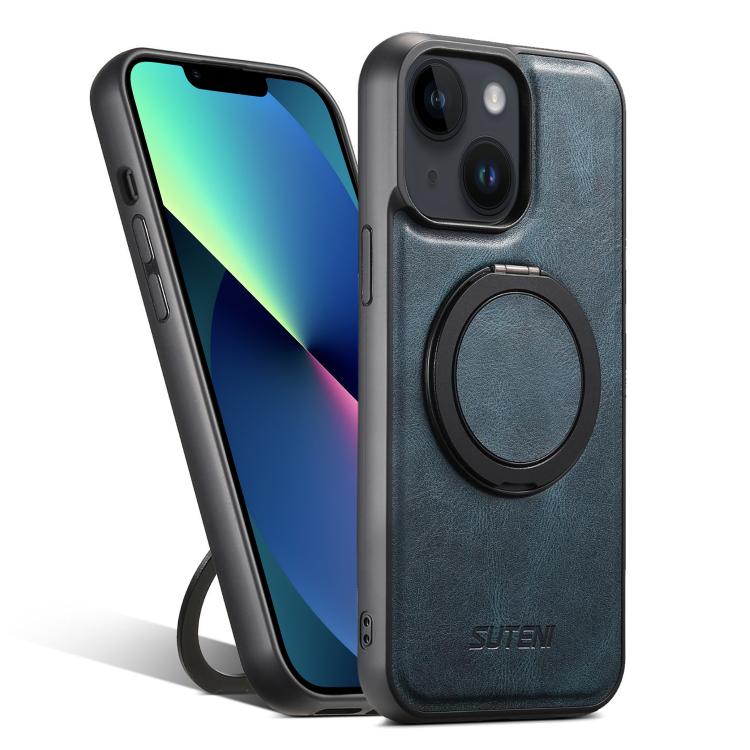 For iPhone 13 Suteni G3 Oil Wax 360 Rotation Holder MagSafe Back Phone Case(Blue)