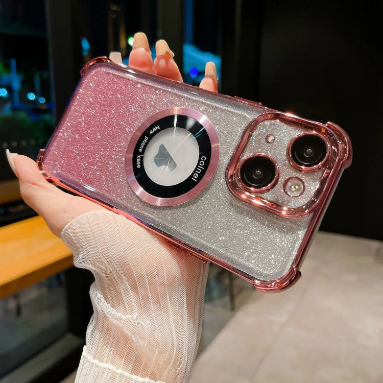 For iPhone 14 Plus 6D Electroplating Gradient Glitter Armor Magsafe Phone Case(Pink)