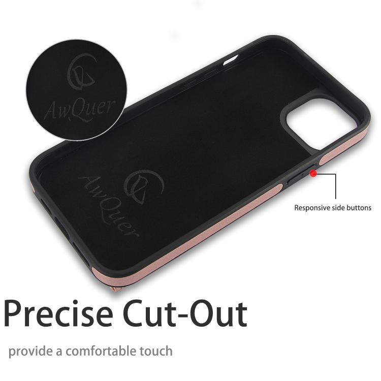 For iPhone 14 Plus AwQuer Horizontal Flip Card Bag Holder Leather Phone Case(Rose Gold)