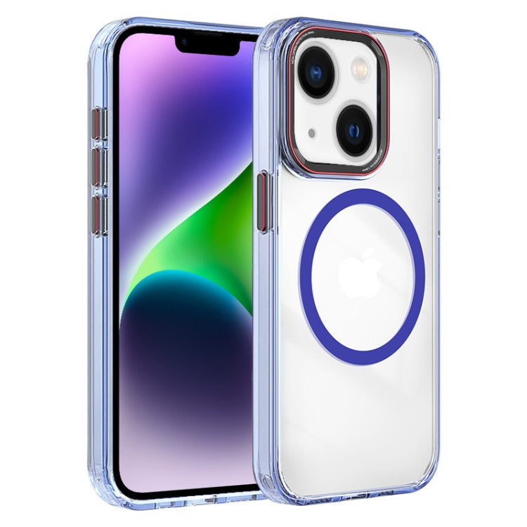For iPhone 14 Plus Crystal TPU Hybrid PC MagSafe Phone Case(Transparent Blue)