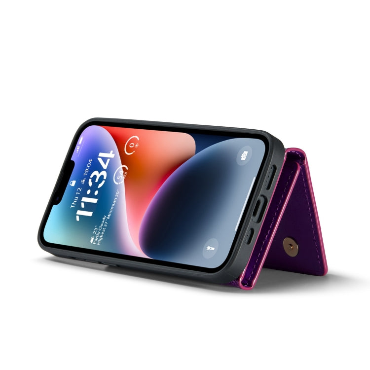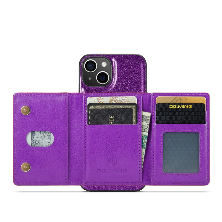For iPhone 14 Plus DG.MING M3 Series Glitter Powder Card Bag Leather Case(Dark Purple)