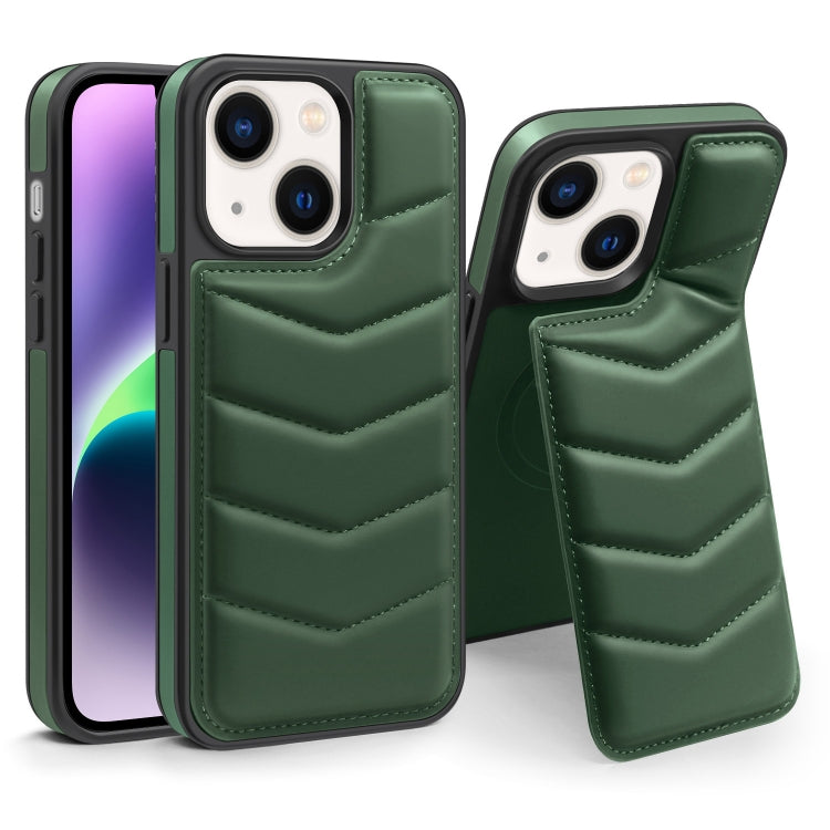 For iPhone 14 Plus Down Jacket Card Bag Holder MagSafe Phone Case(Dark Green)