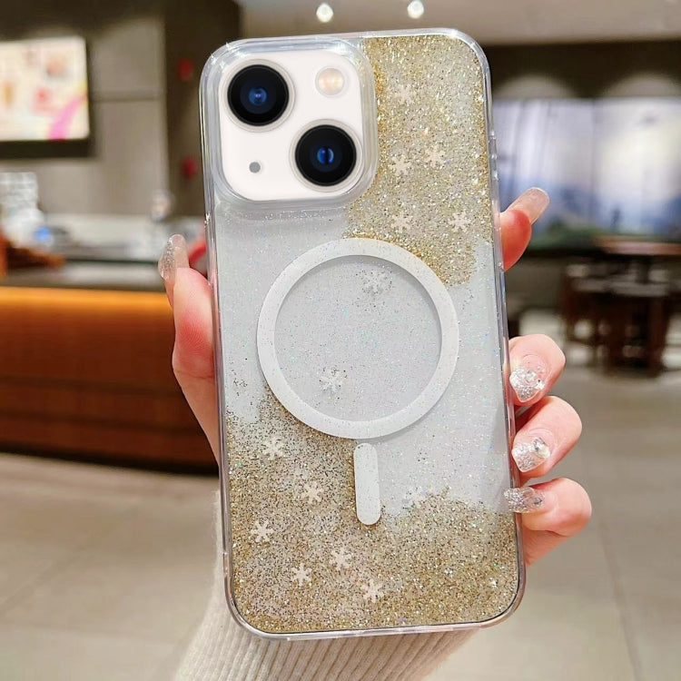 For iPhone 14 Plus Explosive Flash Gradient MagSafe TPU Phone Case(Gold)