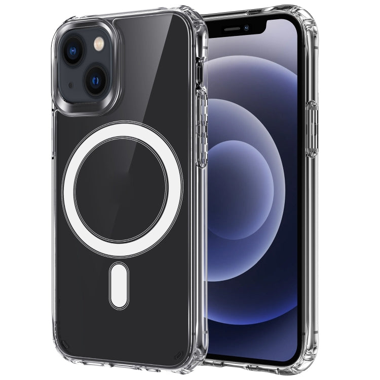 For iPhone 14 Plus Four Corners Shockproof Magsafe Magnetic Phone Case (Transparent)