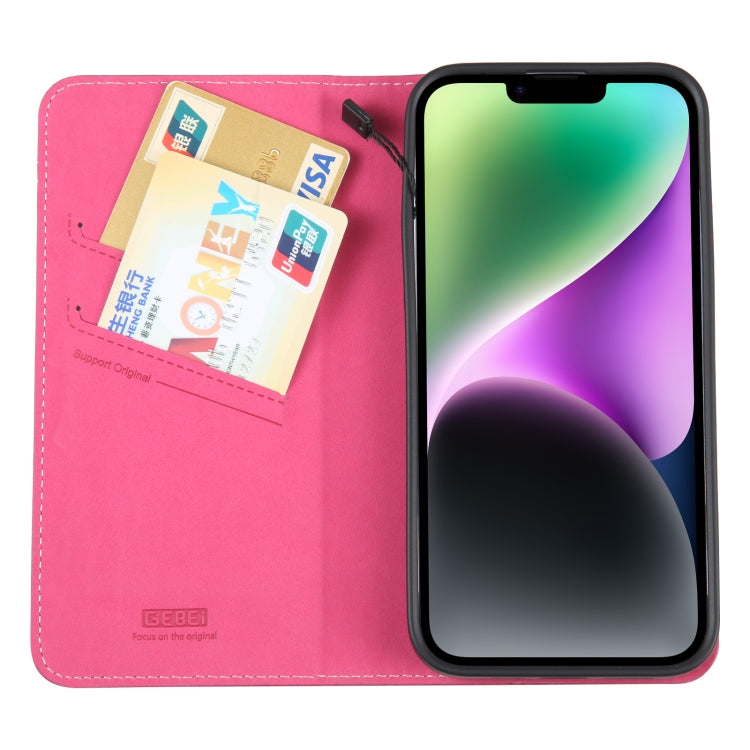 For iPhone 14 Plus GEBEI Top-grain Horizontal Flip Leather Phone Case(Rose Red)