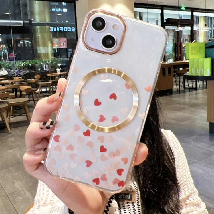 For iPhone 14 Plus Love Heart MagSafe Phone Case (Pink Red)