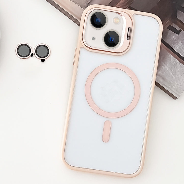 For iPhone 14 Plus MagSafe Acrylic Hybrid TPU Holder Phone Case with Lens film(Pink)