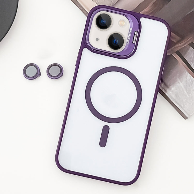 For iPhone 14 Plus MagSafe Acrylic Hybrid TPU Holder Phone Case with Lens film(Purple)