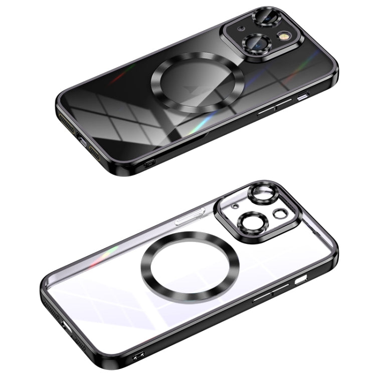 For iPhone 14 Plus MagSafe CD Texture Metal Lens Frame Full Coverage Phone Case(Black)