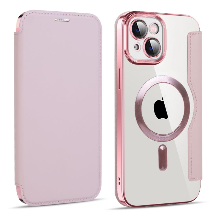 For iPhone 14 Plus MagSafe Magnetic RFID Anti-theft Leather Phone Case(Pink)
