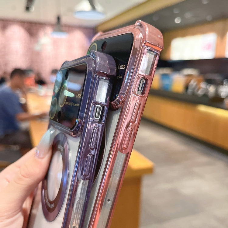 For iPhone 14 Plus MagSafe Shockproof TPU Phone Case with Lens Film(Black Purple)