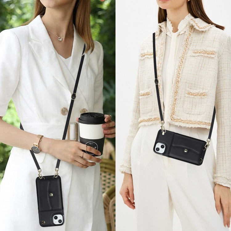 For iPhone 14 Plus RFID Card Slot Phone Case with Long Lanyard(Black)