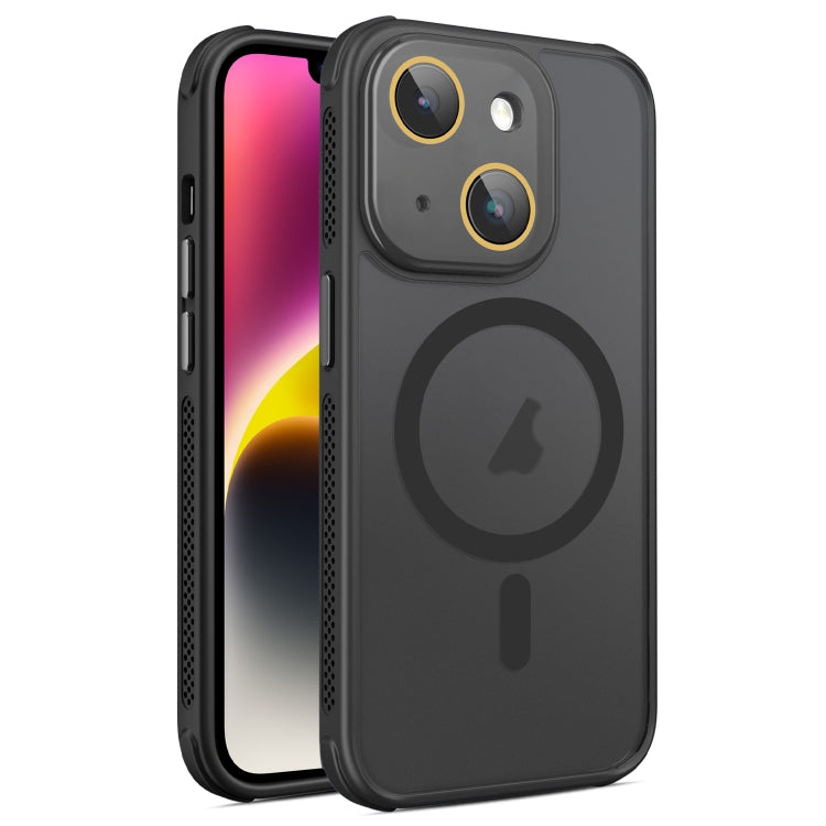For iPhone 14 Plus Hardware Side Cooling Skin Feel Frosted MagSafe Magnetic Phone Case with Lens Film(Black)