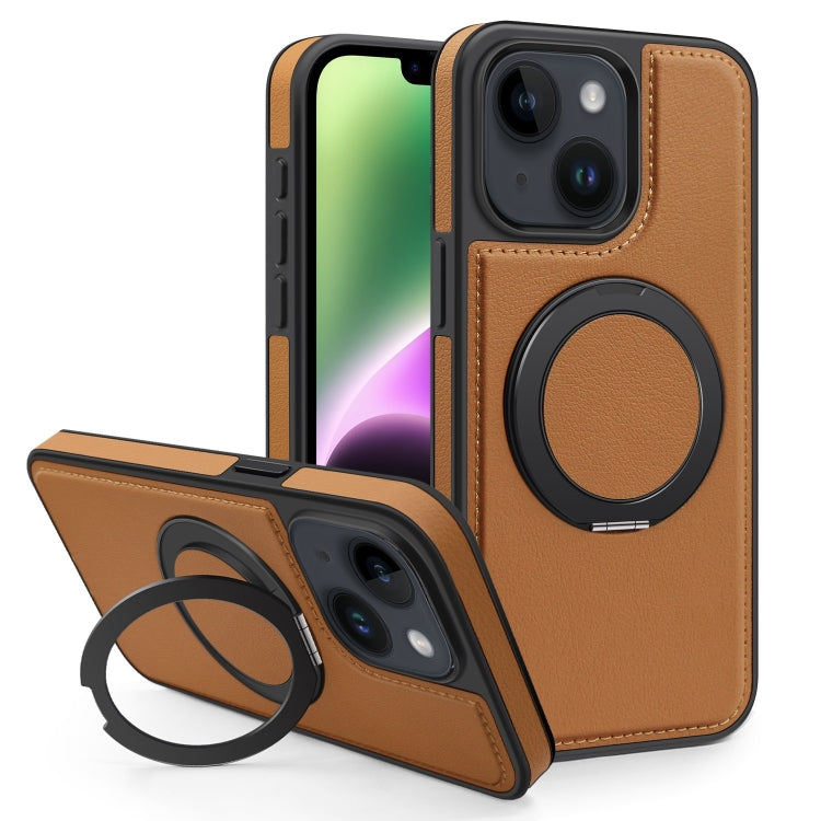For iPhone 14 Plus Yashi 360 Degree Rotating MagSafe Bracket Phone Case(Brown)
