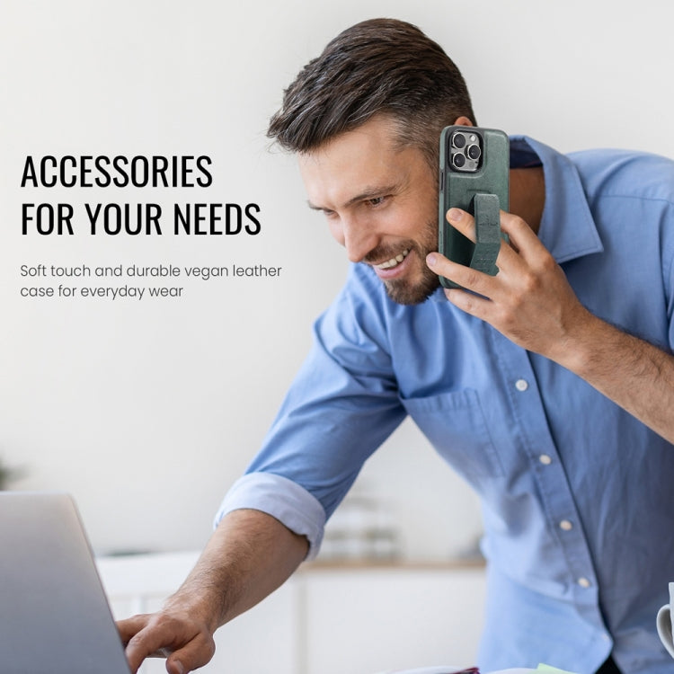 For iPhone 14 Pro Fierre Shann Oil Wax Cow Leather Holder Back Phone Case(Green)