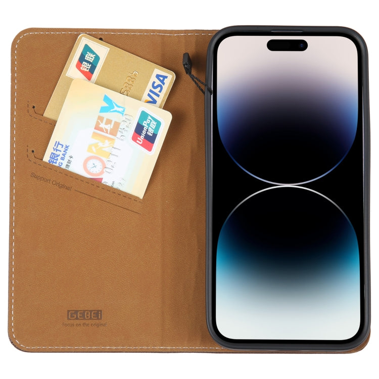 For iPhone 14 Pro GEBEI Top-grain Horizontal Flip Leather Phone Case(Brown)