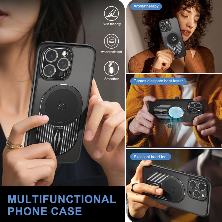 For iPhone 14 Pro Heat Dissipation Aromatherapy MagSafe Holder Phone Case(Black)