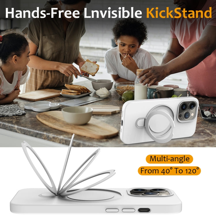 For iPhone 14 Pro Liquid Silicone MagSafe Magnetic Phone Case with Ring Holder(White)