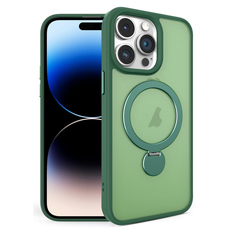 For iPhone 14 Pro Max 360 Degree Rotating MagSafe Magnetic Bracket Frosted Phone Case(Green)