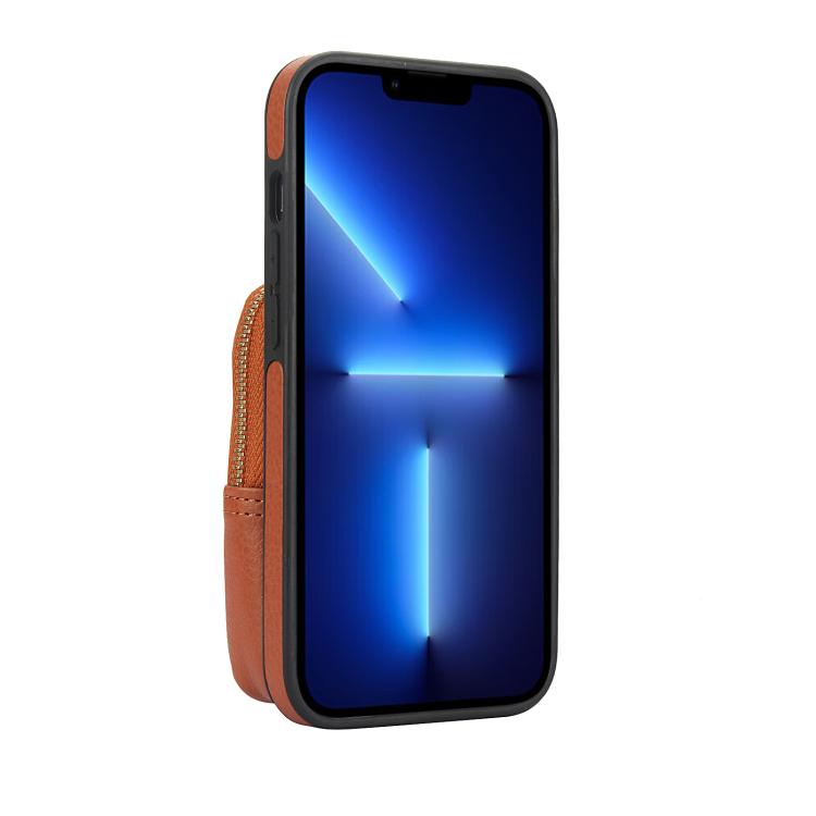 For iPhone 14 Pro Max AwQuer Crossbody Zipper Wallet Bag Litchi Leather Phone Case(Brown)