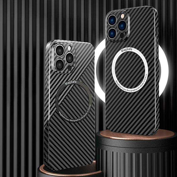 For iPhone 14 Pro Max Carbon Fiber Texture MagSafe Magnetic Phone Case (Black Blue)
