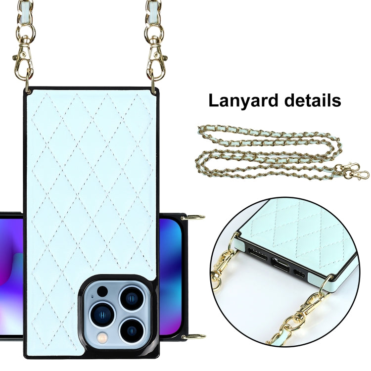For iPhone 14 Pro Max Crossbody Rhombic Microfiber Leather Phone Case(Light Blue)