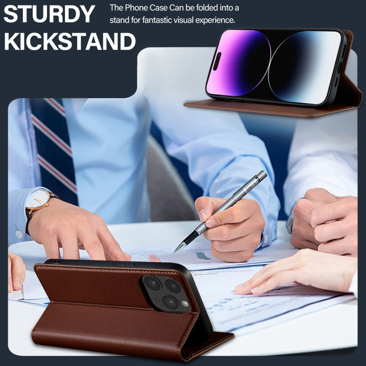 For iPhone 14 Pro Max LC.IMEEKE L1 Series Frosted Fine Texture PU Phone Case(Brown)