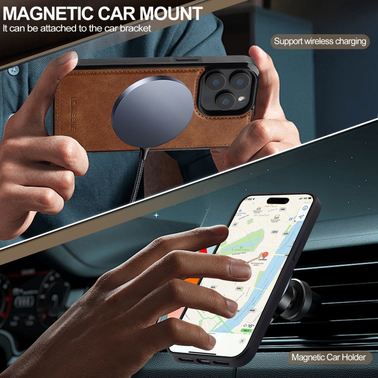 For iPhone 14 Pro Max LC.IMEEKE L5 Series Detachable RFID Card Bag Magsafe Phone Case(Brown)