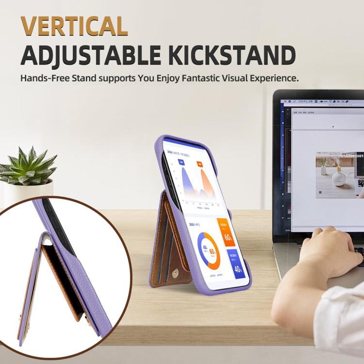 For iPhone 14 Pro Max Litchi Texture Leather Ring Card Bag Holder Phone Case(Purple)