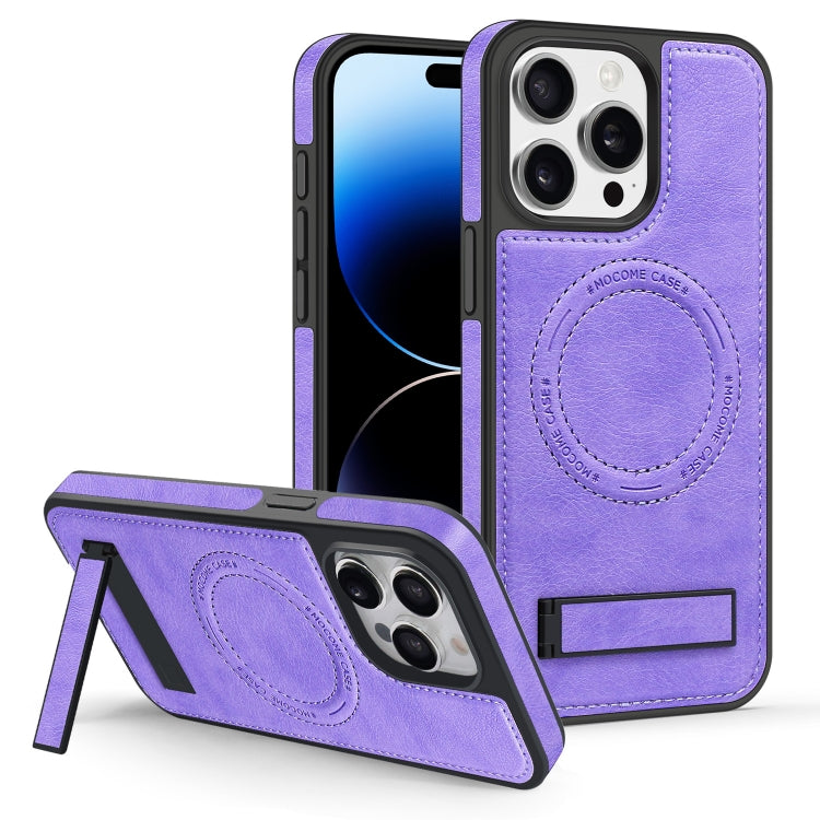 For iPhone 14 Pro Max Multi-function Holder MagSafe PU Phone Case(Purple)