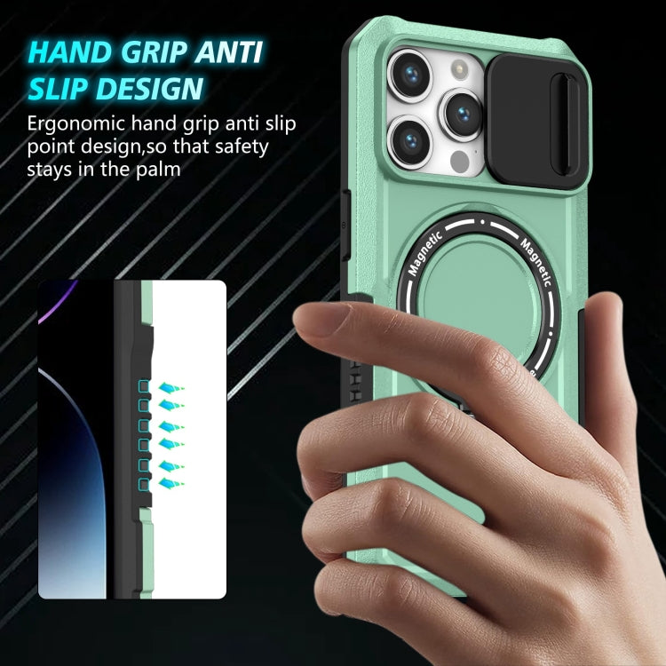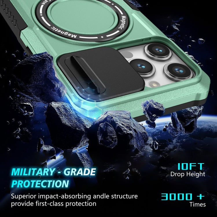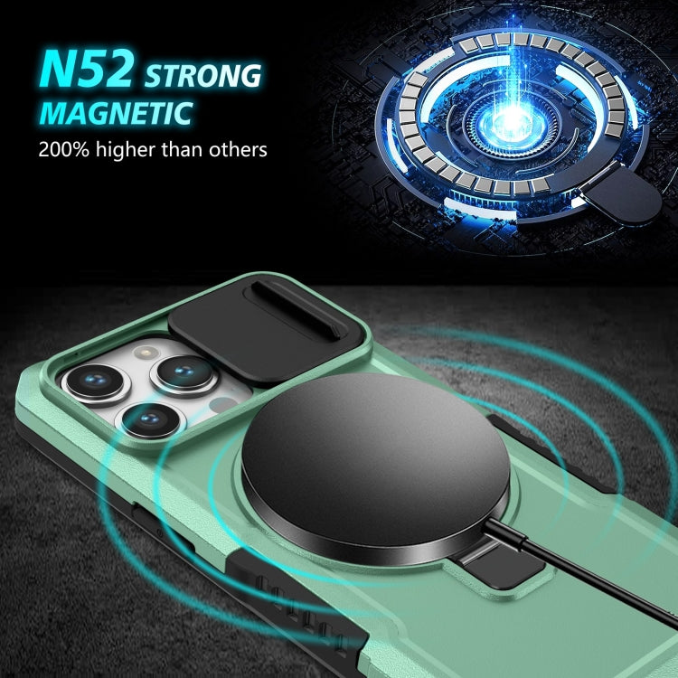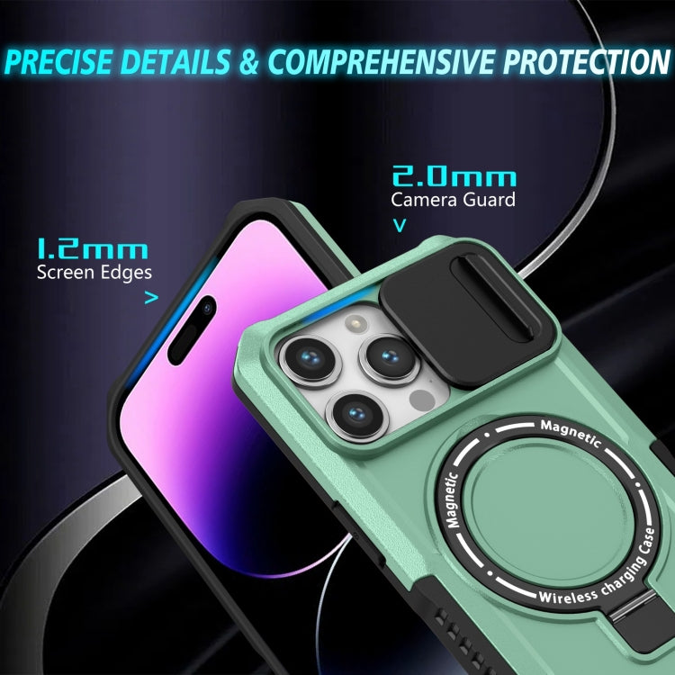 For iPhone 14 Pro Max Sliding Camshield MagSafe Holder TPU Hybrid PC Phone Case(Light Blue)