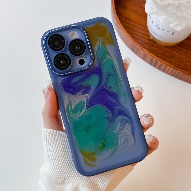 For iPhone 14 Pro Oil Painting Electroplating TPU Phone Case(Blue)