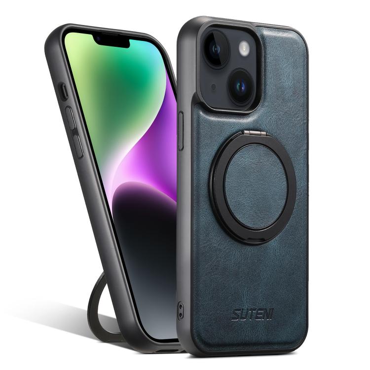 For iPhone 14 Suteni G3 Oil Wax 360 Rotation Holder MagSafe Back Phone Case(Blue)