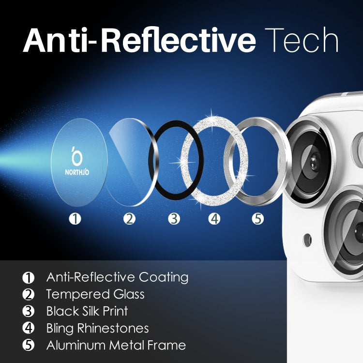 For iPhone 15 / 15 Plus / 14 / 14 Plus NORTHJO 3 Set 6pcs Camera Lens Protector Glitter Metal Ring Film(Silver)