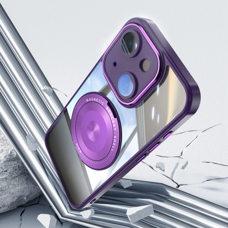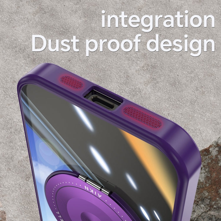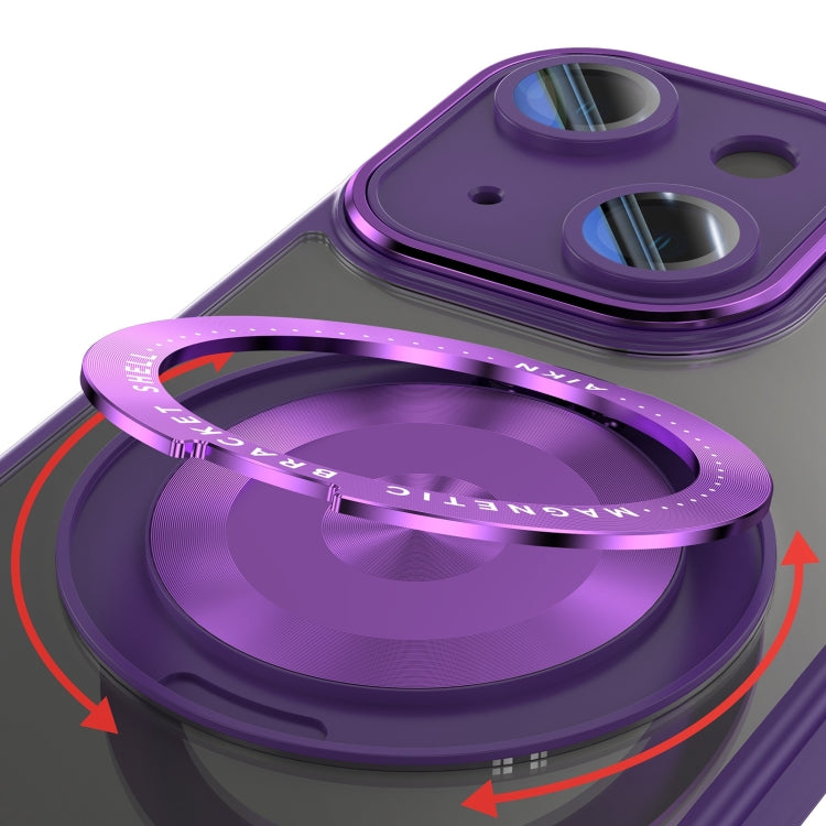 For iPhone 15 360 Holder Magsafe Acrylic Hybrid TPU Phone Case(Purple)