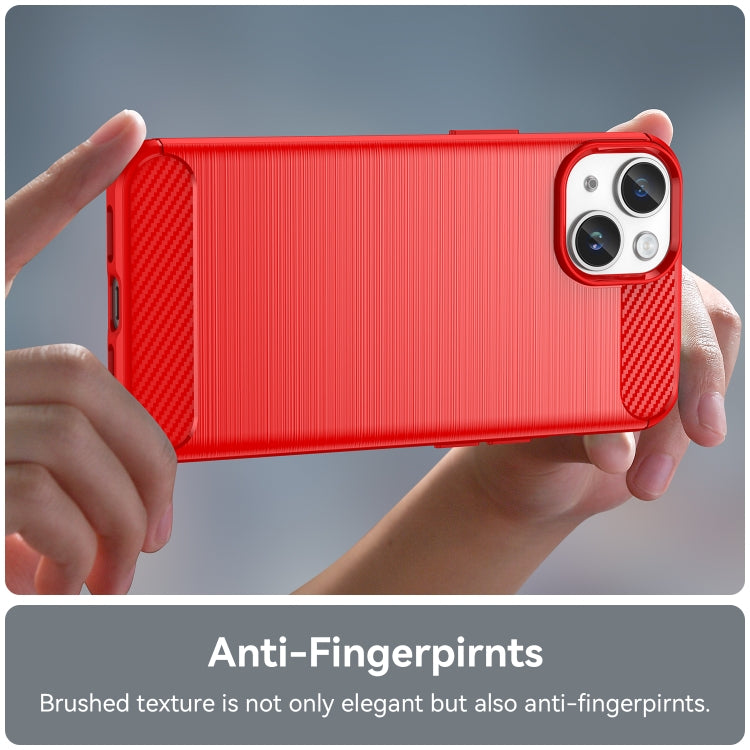 For iPhone 15 Brushed Texture Carbon Fiber TPU Phone Case(Red)