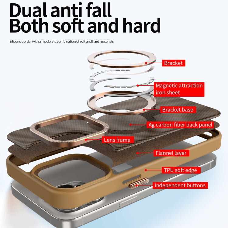 For iPhone 15 Carbon Fiber MagSafe Holder Phone Case(Grey)